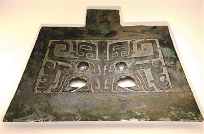 商代兽面纹铜钺。 新华社记者 李安摄