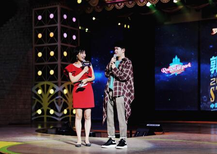 在 “你来模仿我来猜”游戏互动环节中,郭聪明与粉丝默契配合。活泼幽默的他在这一环节中需用肢体表述出大屏显示的词语,请粉丝根据他的模仿猜出词语本身。过程中因“不满”粉丝将他模仿的兔子猜成土拨鼠,向粉丝卖萌发问,引得现场笑声不断。